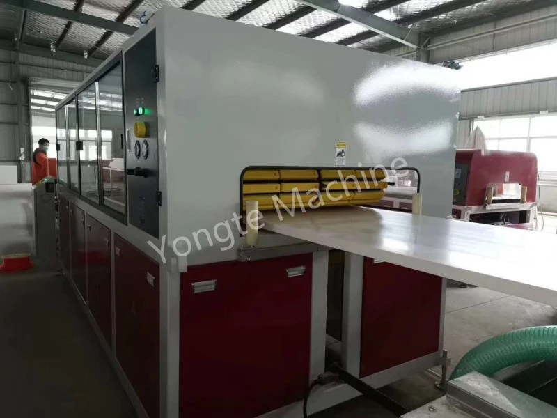 Model & cấu hình thiết bị: Dây chuyền lắp đặt sử dụng hệ thống ép đùn trục vít đôi hình nón SJSZ80/156, được trang bị cấp liệu tự động, hiệu chuẩn chân không, ổn định, cắt chính xác, cắt cạnh và hệ thống điều khiển tiên tiến. Dòng có thể tạo ra tối đa. Tấm cửa nhựa PVC rộng 900mm có tiết diện rỗng bằng nhựa PVC và CaCo3 làm chất độn.